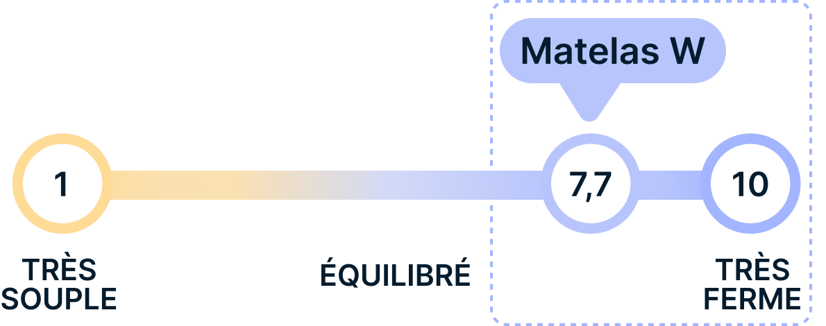 Avec un soutien ferme évalué à 7,7/10 sur l'échelle de fermeté, le matelas W mousse a été pensé pour ceux qui recherchent à la fois maintien et liberté de mouvements.