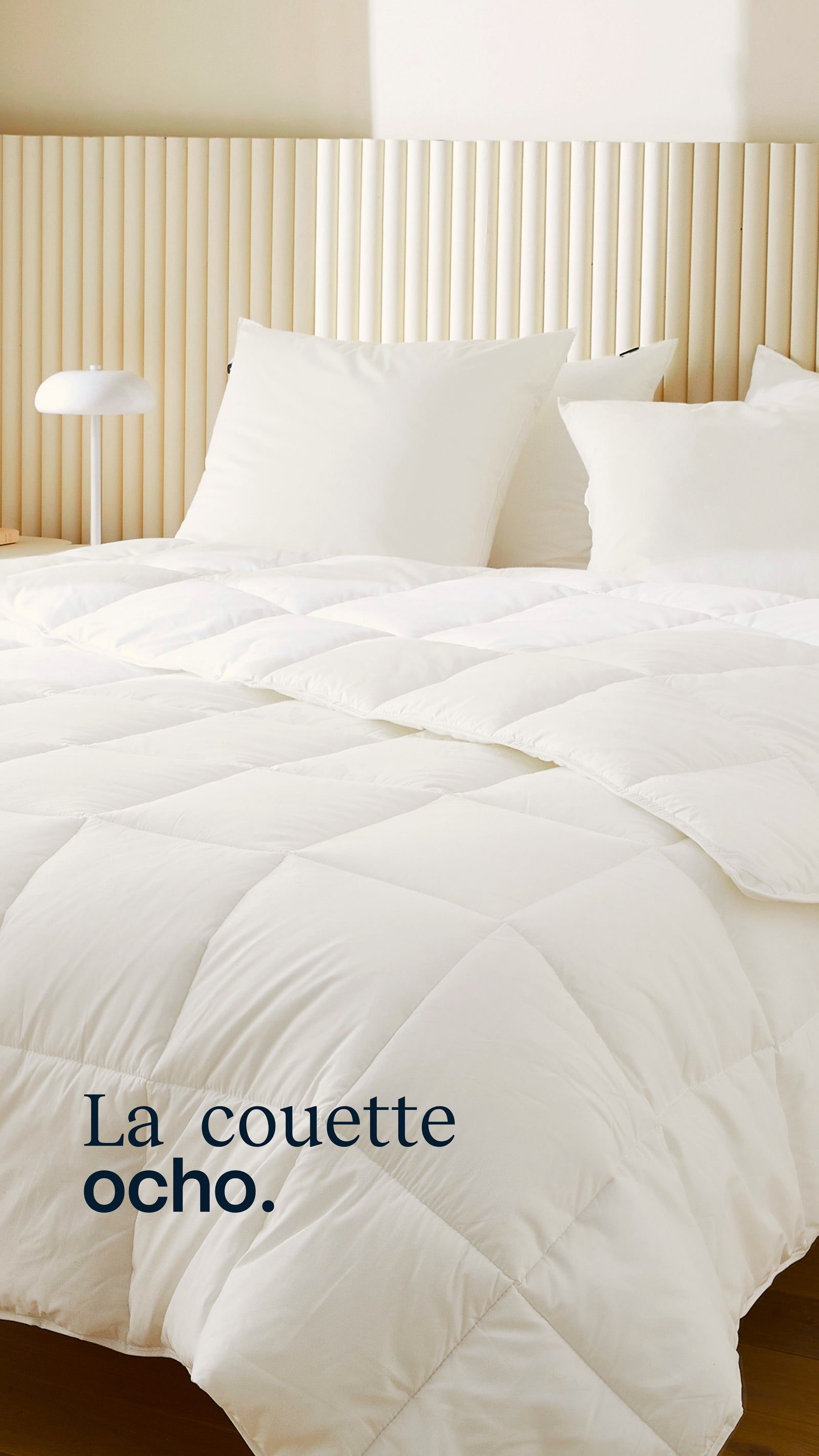 La couette ocho apporte le même confort et le même gonflant qu’une couette en duvet, mais dans une version hypoallergénique, anti-acariens et très simple à entretenir. Son garnissage en microfibre recrée la douceur et le moelleux du duvet, sans utiliser de matières animales. Vous profitez ainsi d’une couette qui reste volumineuse au fil des lavages, tout en alliant efficacité, praticité et respect de l’environnement.