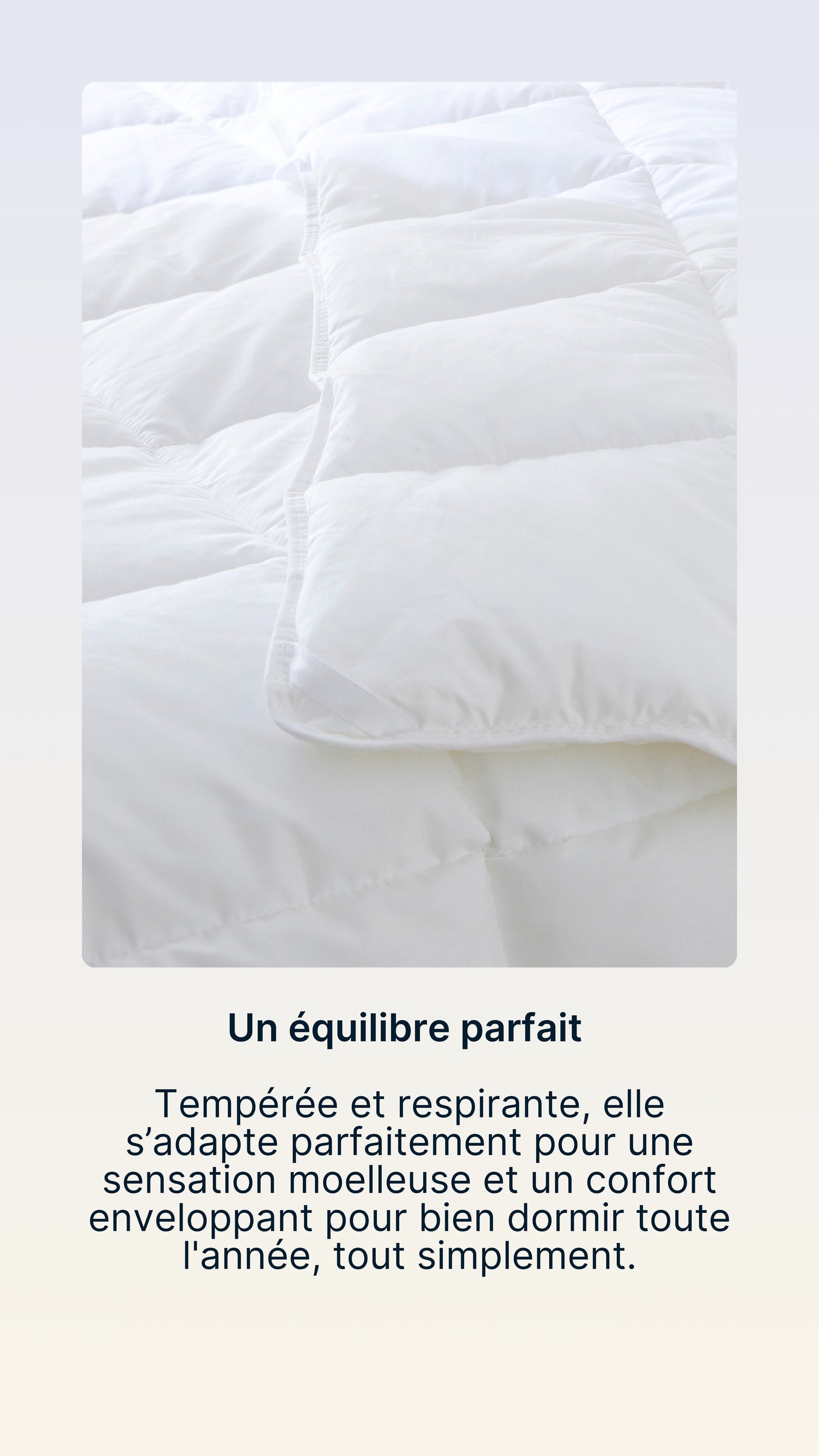 - Enveloppe respirante et thermorégulatrice : 50% coton / 50% Tencel™