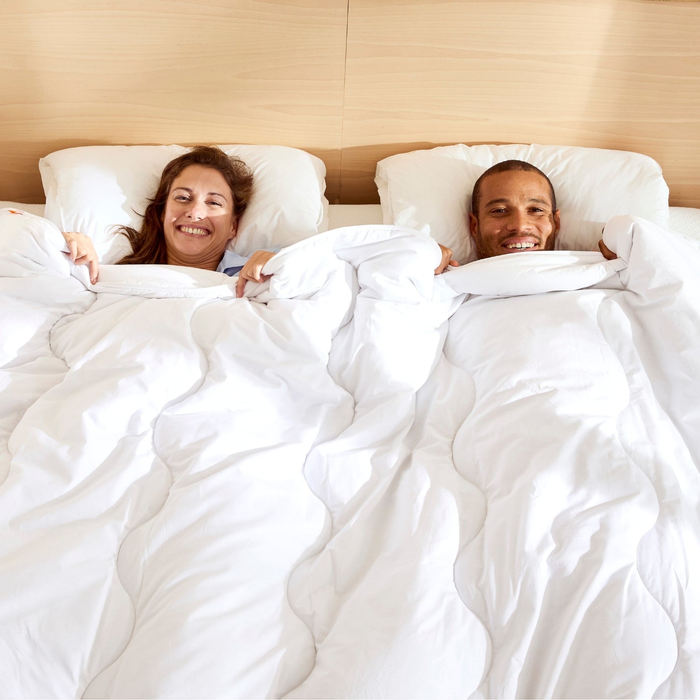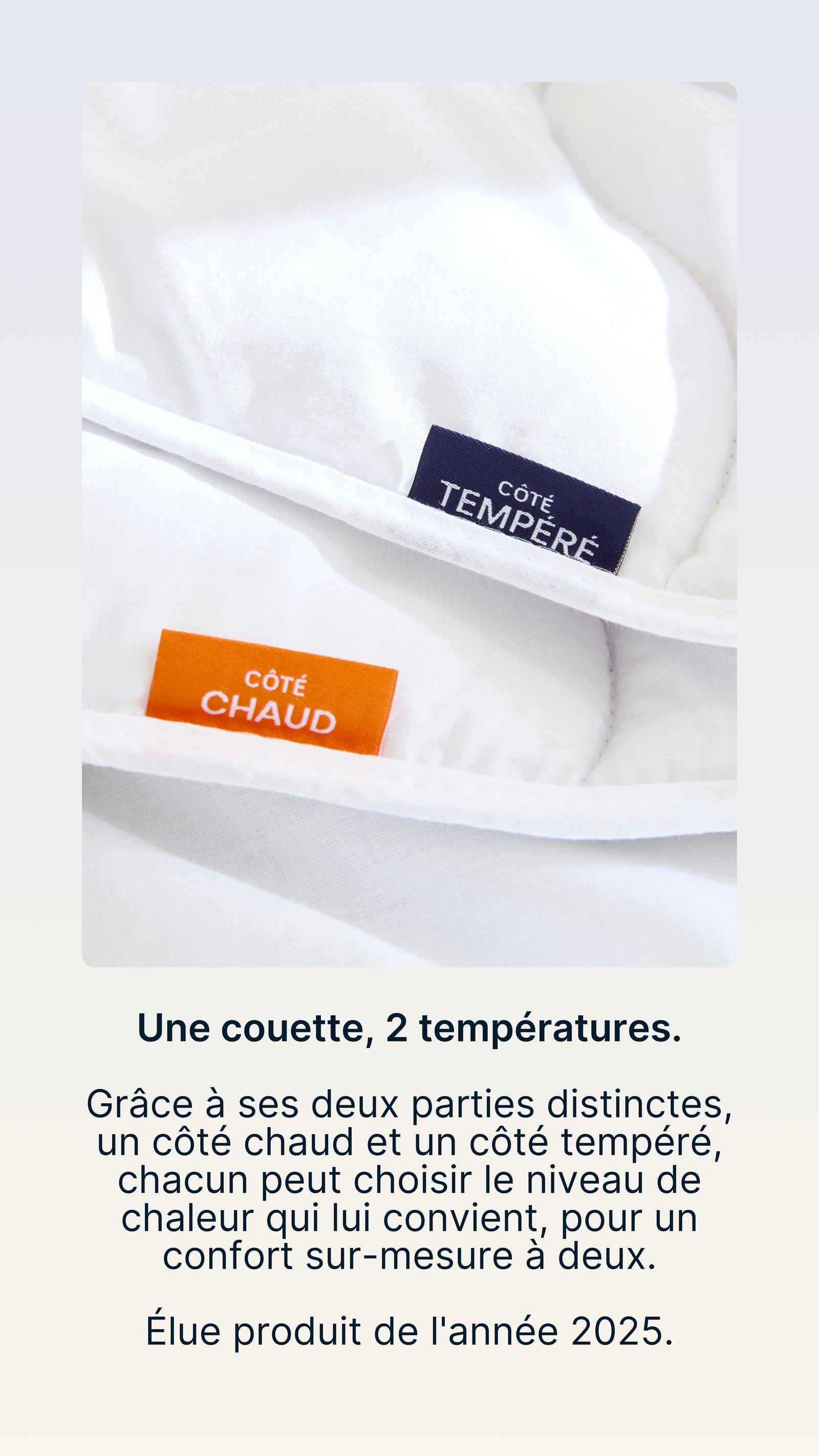 Cette différence permet à chacun de trouver le niveau de chaleur qui lui correspond et de profiter d’un confort personnalisé, sous une même couette.
