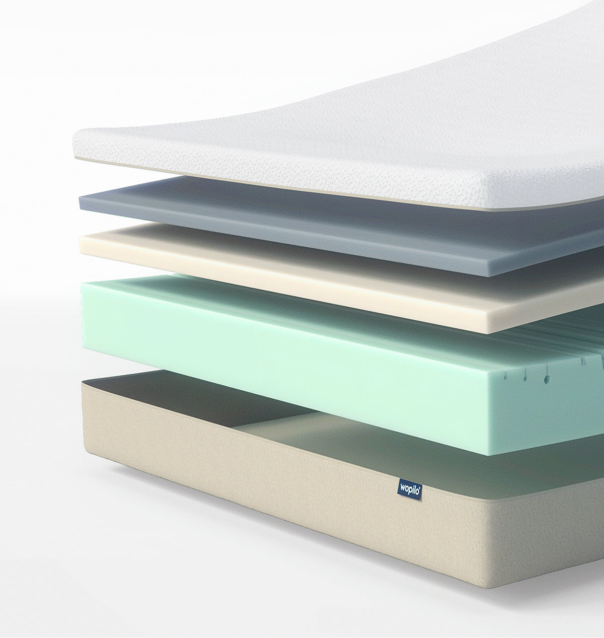 Le matelas W mousse premium est composé de 5 couches de confort, fabriquées avec des matériaux de haute qualité, soigneusement sélectionnés pour prendre soin de vos nuits et de la planète.