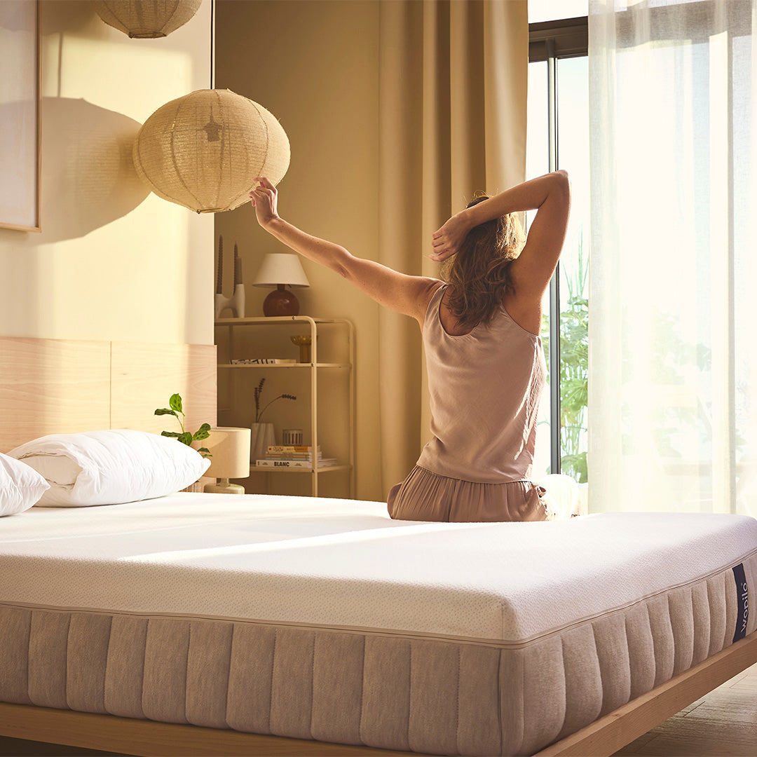 Le matelas Wopilo hybride se décline en deux niveaux de soutien pour que chacun trouve le confort qui lui correspond le mieux, quelle que soit sa position de sommeil.