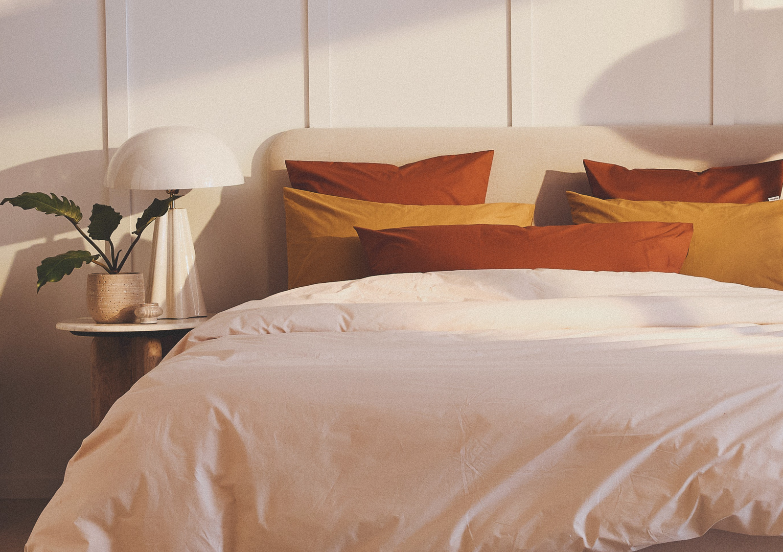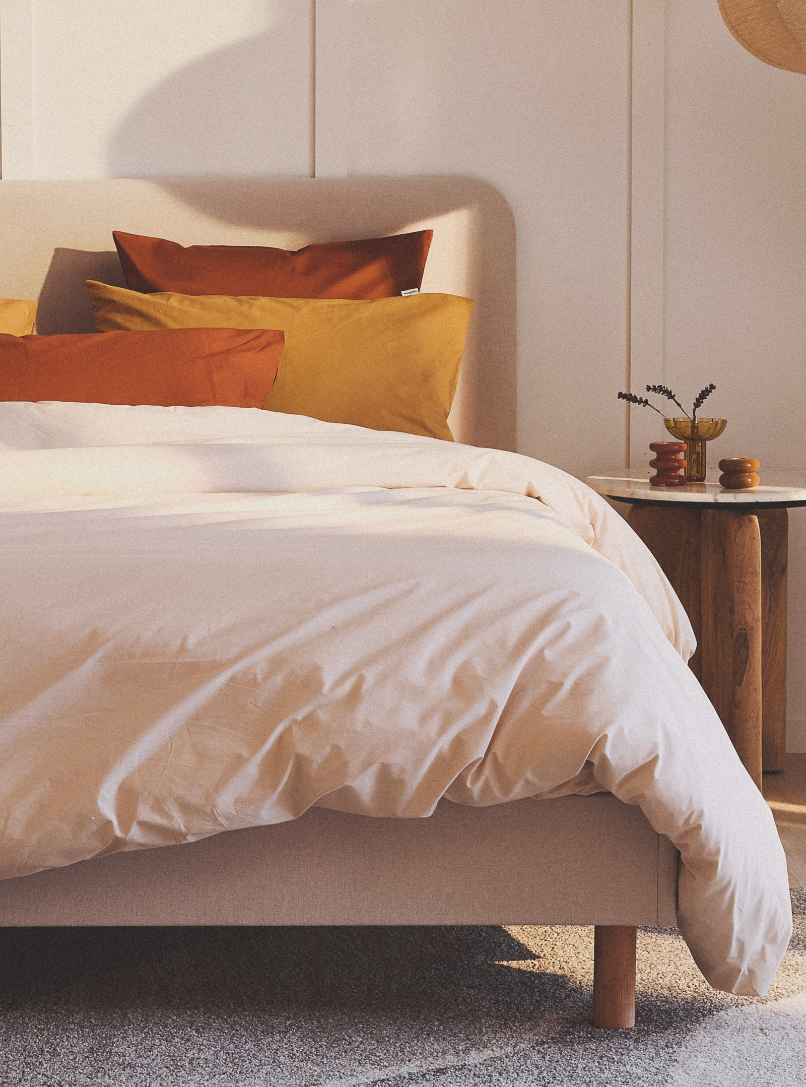 La housse de couette en percale de coton bio - Dunes beige et terracotta