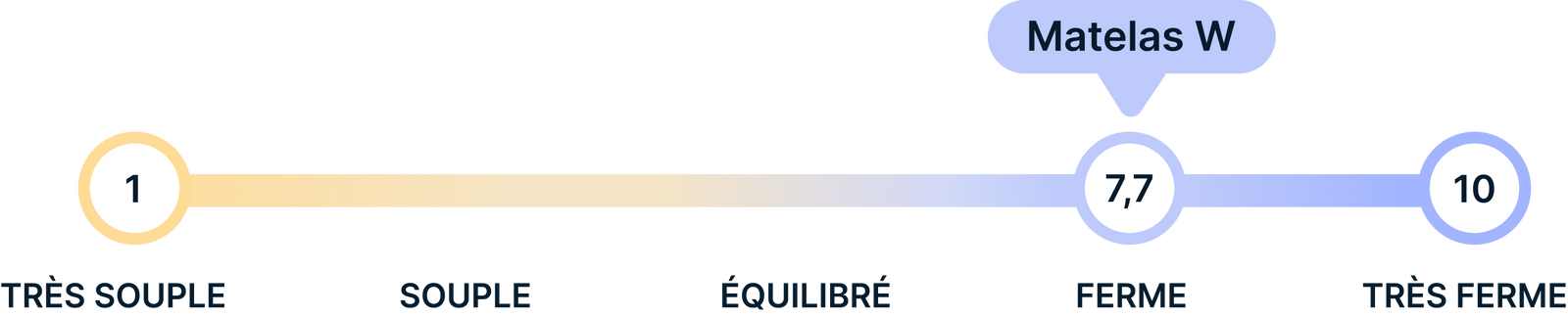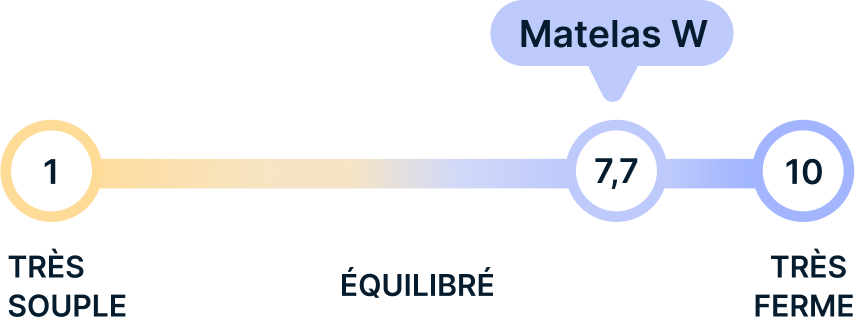 Avec un soutien ferme évalué à 7,7/10 sur l'échelle de fermeté, le matelas W mousse a été pensé pour ceux qui recherchent à la fois maintien et liberté de mouvements.